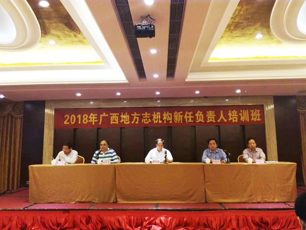 培训期间,广东省方志办原主任陈强以《地方志办主任应树立六种意识》为题,给学员讲述地方志主任应树立事业意识、大局意识、法制意识、机遇意识、质量意识以及作为意识等内容,并谈了自己的认识及感悟;广西历史学会会长唐凌以《看清广西历史底色 探索新的素材与表现方式 提高志书编写质量》为题,强调在确保全面客观记载区域发展历程的基础上,积极大胆的进行表现方式的创新探索;自治区方志办副主任邓敏杰以《志书编修质量保障机制新态势》为题,从方志发展史略、志书编修质量保障机制,志书编修转型升级导向等方面进行授课;自治区通志工作处副处长黄家接以《地方志书编纂流程及编纂工作应注意的问题》为题,从志稿编纂中存在的问题及规避等方面进行解析;自治区年鉴处处长孙仿以《明确目标任务 推动年鉴事业健康发展》为题,讲解了年鉴事业发展形势及如何更好的推进年鉴编修工作等方面内容;广西人民出版社温六零以《坚定政治站位 服务工作大局 遵守出版规范》为题,针对地方志和年鉴编纂中存在的问题以及如何按照出版规范要求编写地方志和年鉴等方面内容进行讲解。