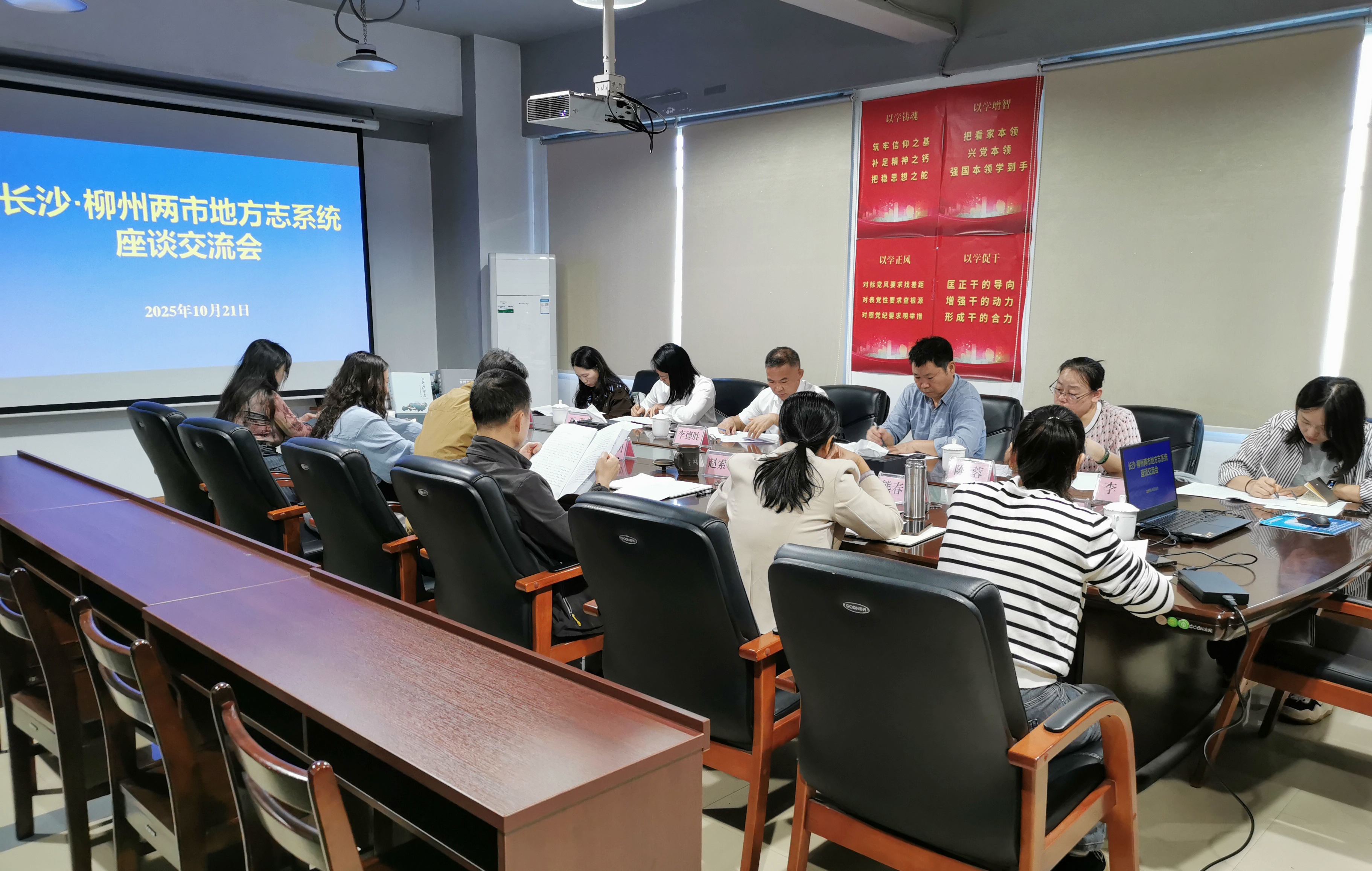 2025年10月21日,长沙市地方志系统到柳州市地方志办开展座谈交流。(吴思雯 摄)